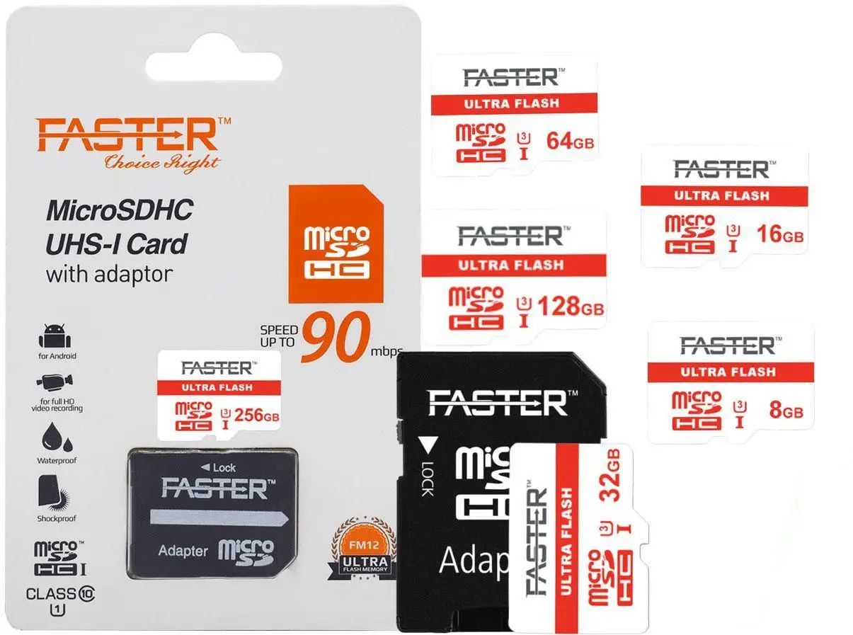Enhance your digital experience with the Faster Class 10 Micro SD Card, offering speeds of up to 90 Mbps for rapid data transfers. This versatile card, available in capacities ranging from 8 GB to 256 GB, ensures water and shock-proof durability. Note that the listed capacity reflects formatting and other functions, and actual available storage may be slightly less. Read speeds of up to 90 Mbps are guaranteed for 8 GB to 256 GB capacities, with write speeds varying based on the card reader, operating device, and other factors.