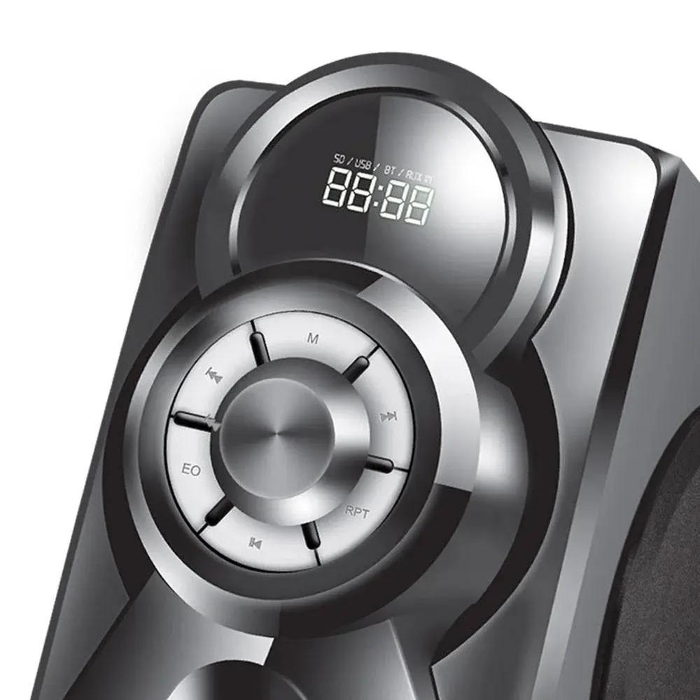 The MEGA100 combines deep bass, clear sound, and modern LED aesthetics to elevate your audio experience. Its versatile connectivity and easy-to-use remote control make it perfect for music, movies, and gaming setups, providing both powerful performance and stylish design in one package.