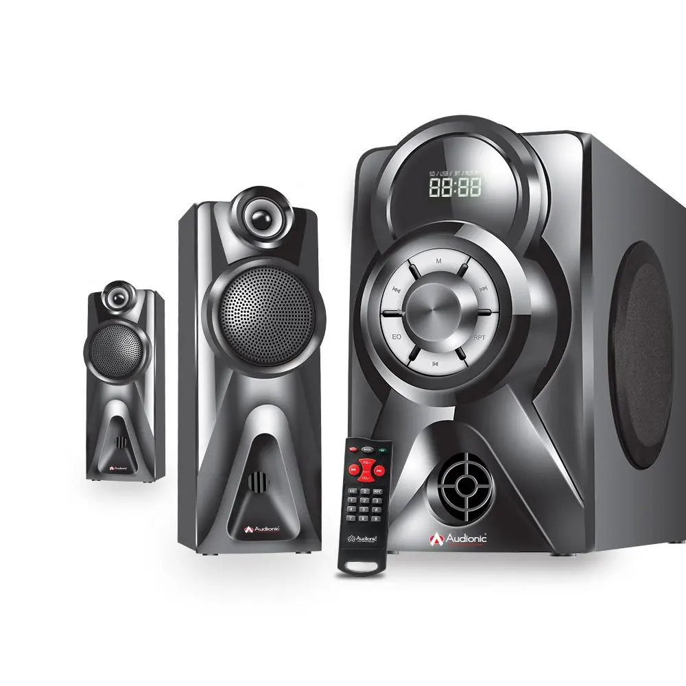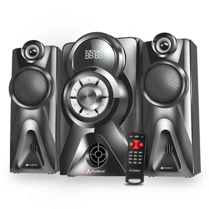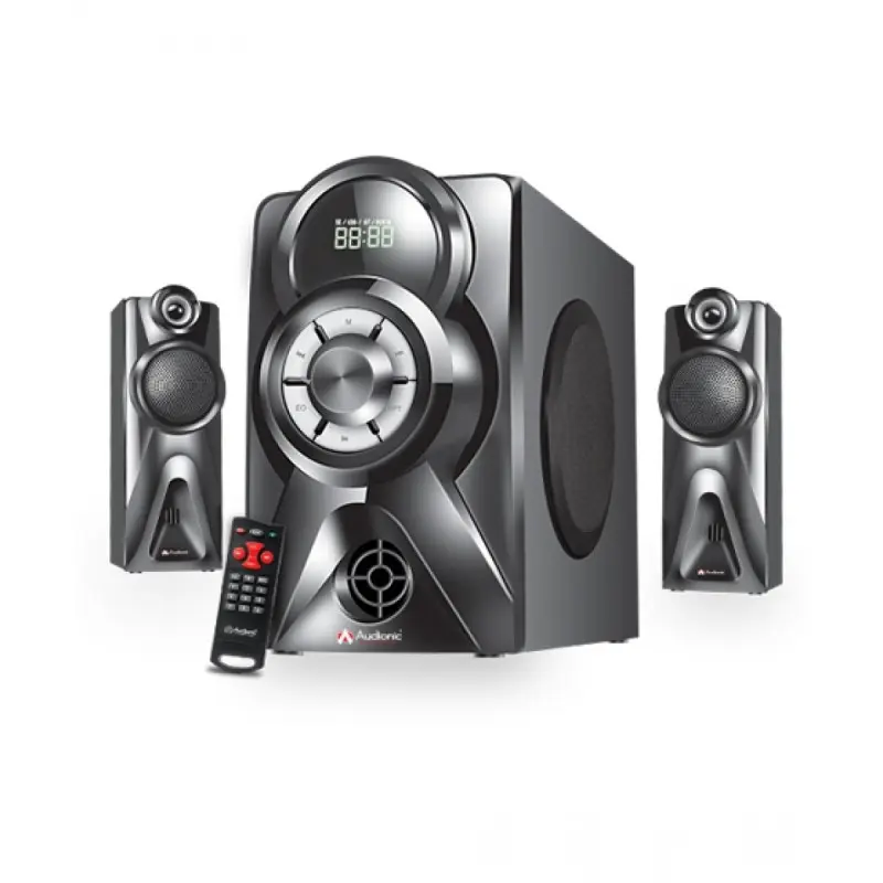 Upgrade your home entertainment with the Audionic Multimedia Speaker MEGA100, designed for music lovers, gamers, and multimedia enthusiasts. Delivering powerful 2.1 channel sound with deep bass and crystal-clear mids and highs, the MEGA100 ensures an immersive audio experience. Multiple connectivity options including Bluetooth, USB, AUX, SD card, and FM radio make it versatile and convenient, while its stylish LED lights add a modern touch to any room.
