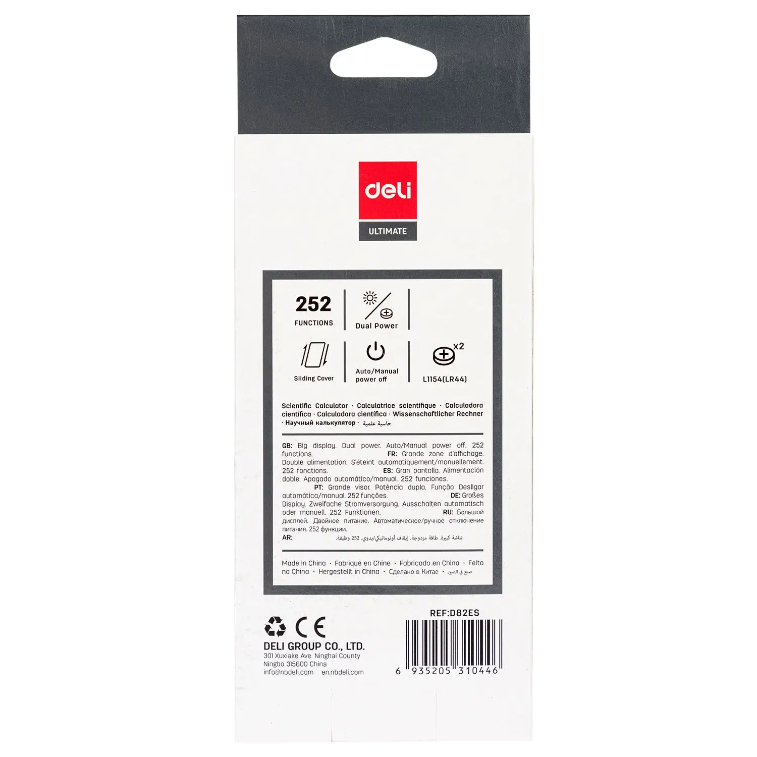 The Deli Scientific Calculator D82ES is designed for students and professionals who need a reliable tool for accurate calculations. With 252 functions covering mathematics, statistics, and scientific applications, it simplifies complex problem-solving. The 12-digit wide display with textbook-style input/output ensures clear and precise results.