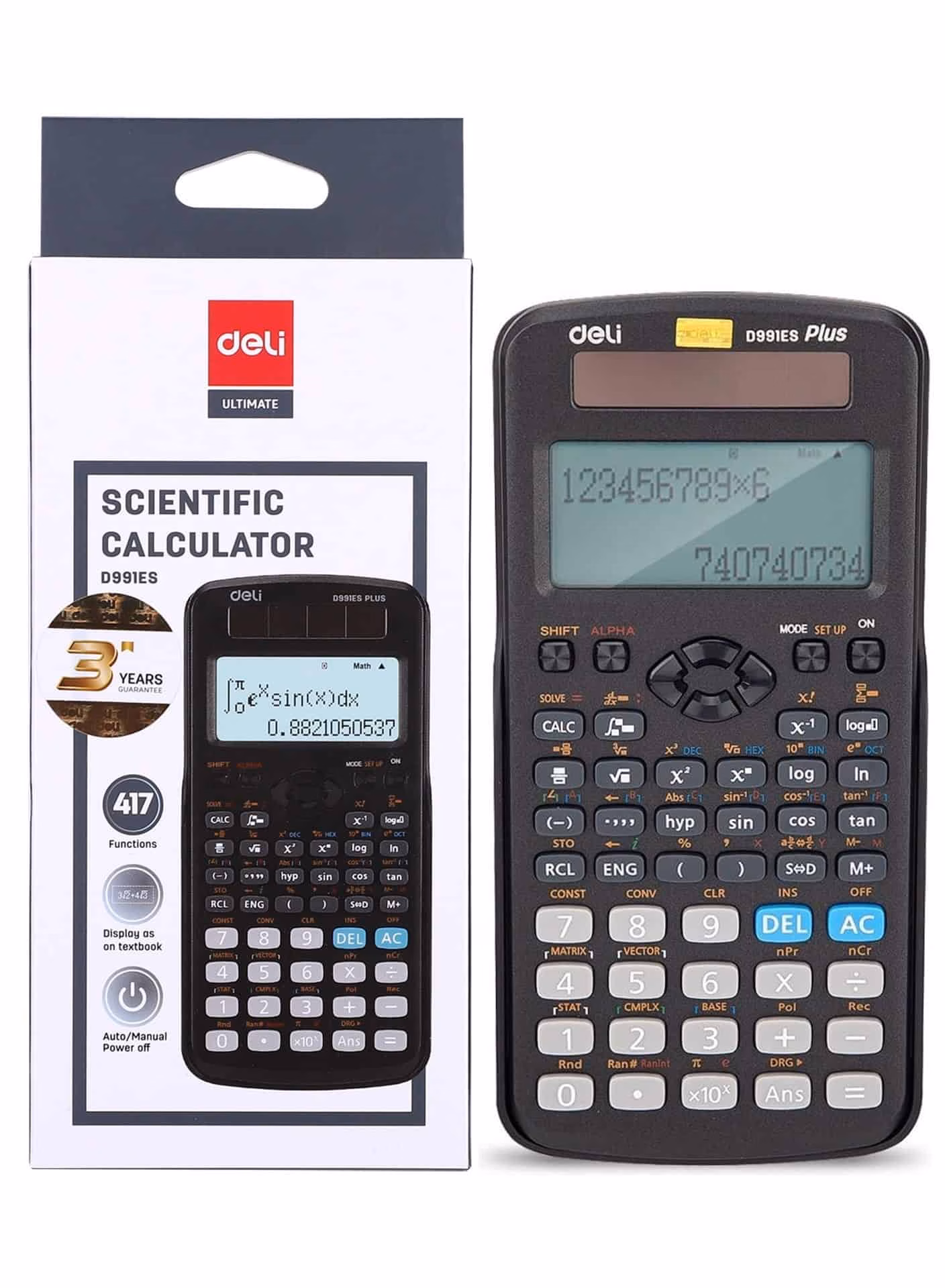 Deli Scientific Calculator D991ES Plus – Dual Power, 417 Functions, Large Display