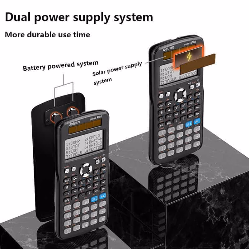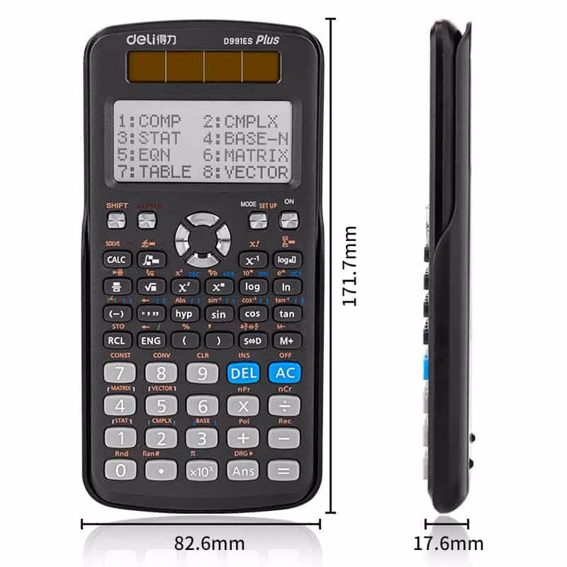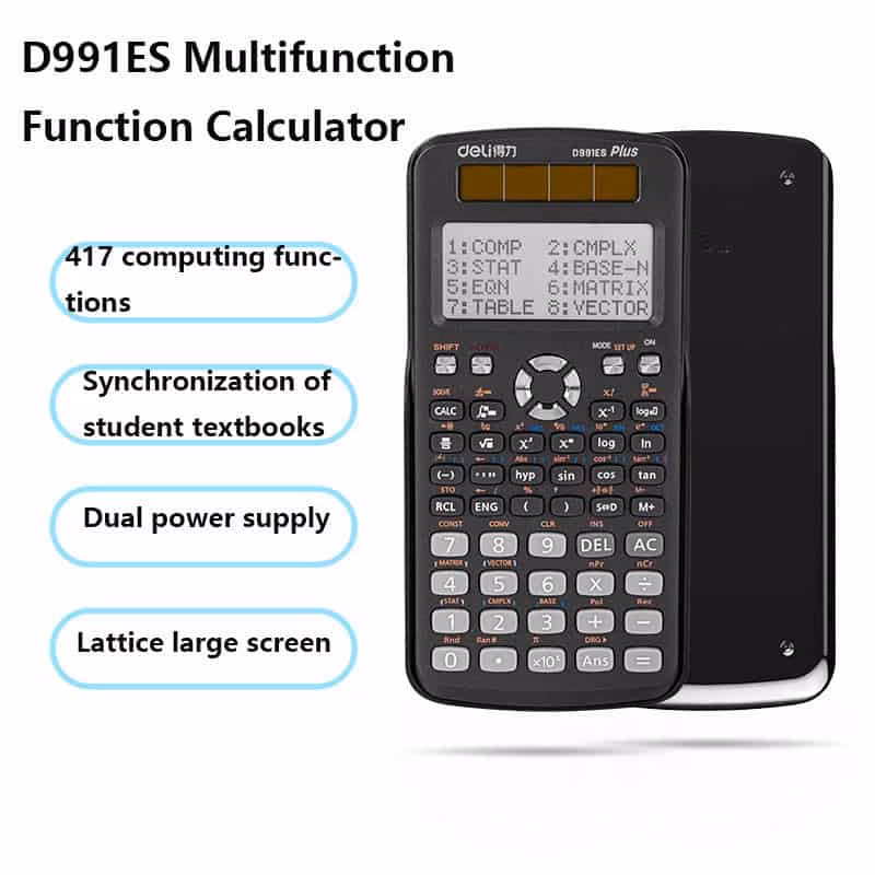 The Deli Scientific Calculator D991ES Plus is a powerful and reliable choice for students, engineers, and professionals. With 417 functions covering mathematics, statistics, and scientific calculations, it ensures accuracy and speed in every task. The 12-digit large display with textbook-style formatting makes complex equations easy to read.