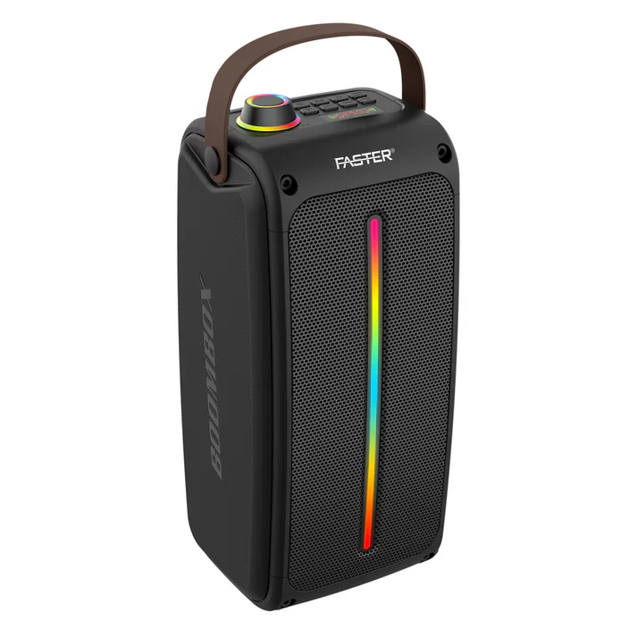 If you want a speaker that combines serious power, visual flair, and real portability, the Faster Echo Go 5 is a top pick. With 40 W of stereo output, you’ll get room‑filling sound, while the RGB lights add a party vibe to any setting. Its durable battery and versatile input options make it perfect for road trips, backyard gatherings, or everyday music listening. It’s not just a speaker — it’s your entertainment powerhouse on the go.