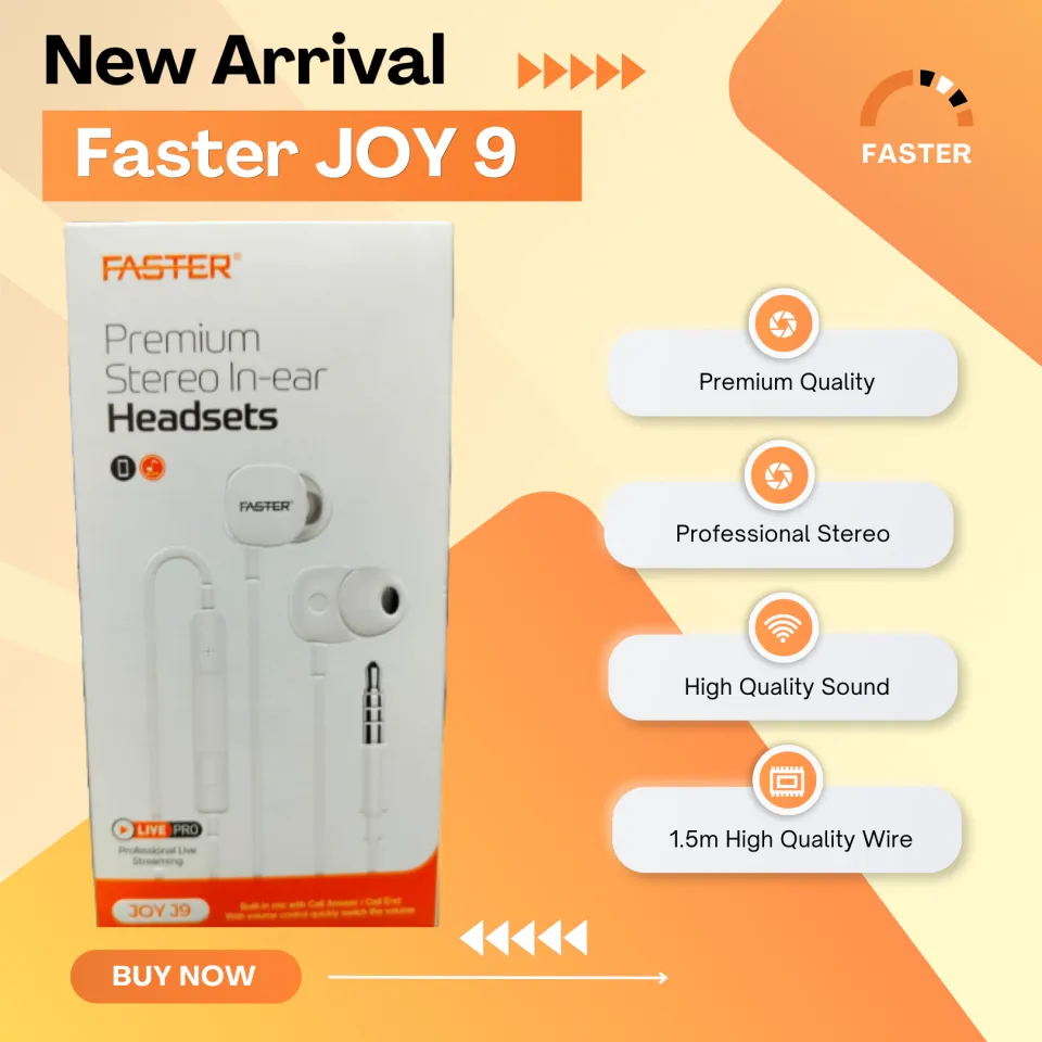 Faster Premium Stereo In-Ear Headsets – Joy J9 – Rich Bass & Clear Calls