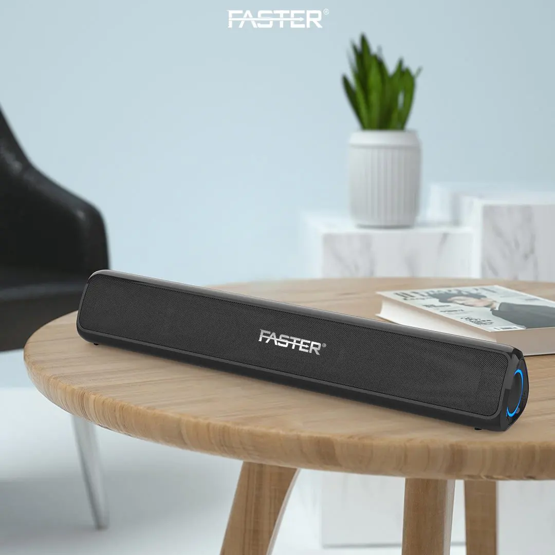 Experience unmatched audio quality with the FASTER Z10 Soundbar Wireless Speaker. This high-performance soundbar features dual 10W speakers that deliver a total output of 20W, providing rich and powerful sound. Equipped with Bluetooth V5.1+EDR, the Z10 ensures seamless wireless connectivity with a transmission distance of up to 10 meters, allowing you to enjoy your music without any interruptions.