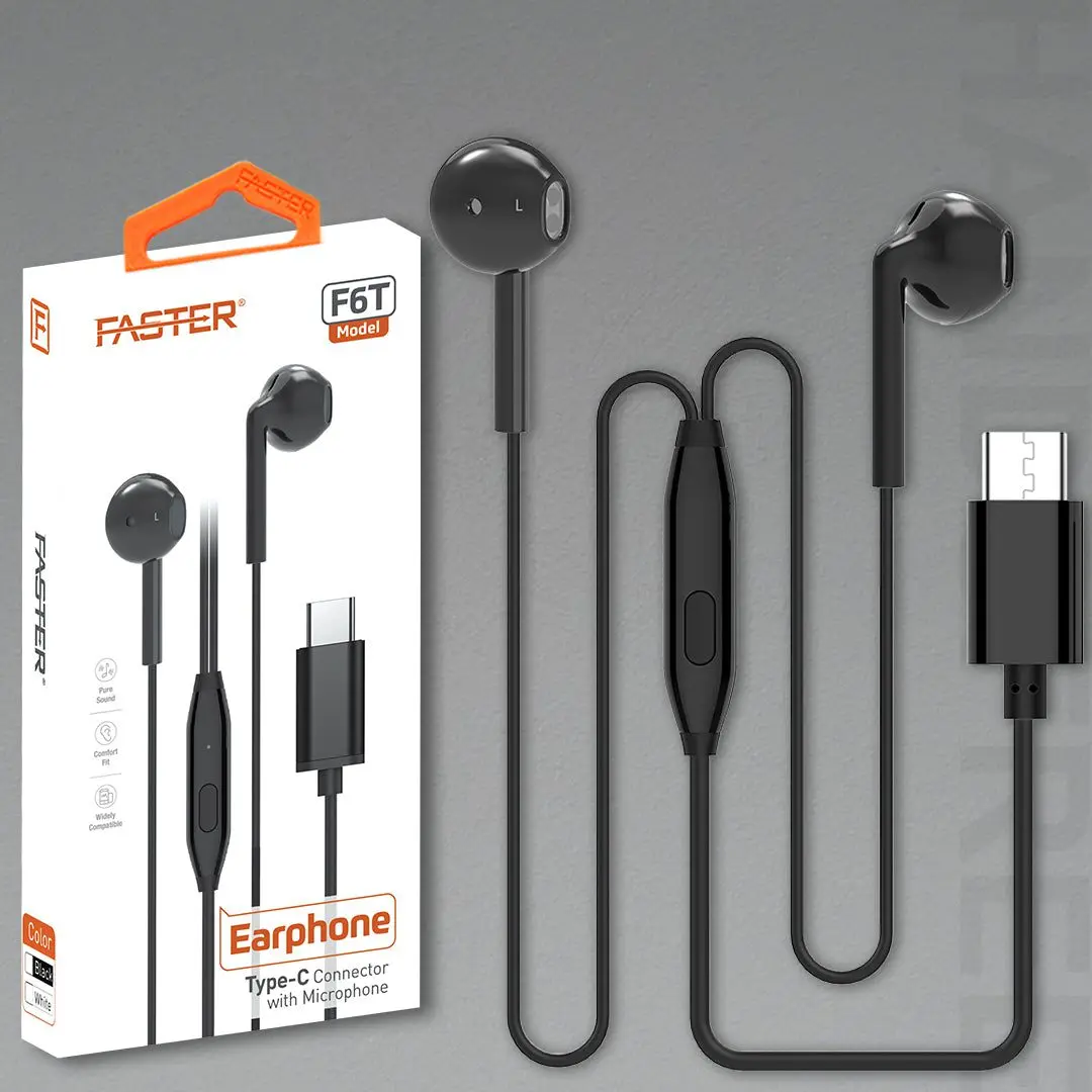 FASTER F6T Hi-Fi Strong Deep Bass Type-C Handsfree with Mic – Superior Sound Quality and Modern Design