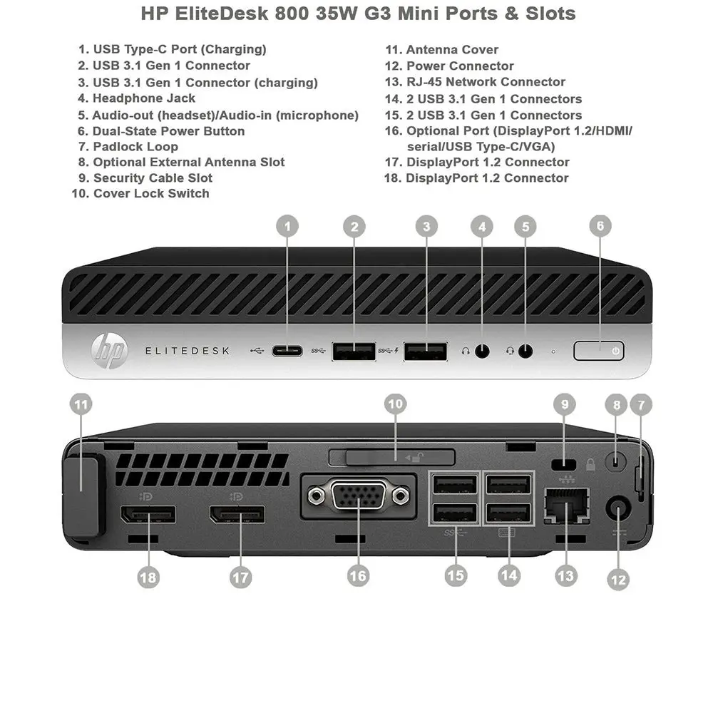 The HP EliteDesk 800 G3 Mini PC is a powerful and space-saving desktop designed for efficient daily computing. Equipped with an Intel Core i3 6th Generation processor, it delivers smooth performance for office work, browsing, documentation, and business applications. Its mini form factor fits easily on desks and counters while the SSD provides fast boot times and responsive speed. A dependable choice for offices, schools, shops, and home use.