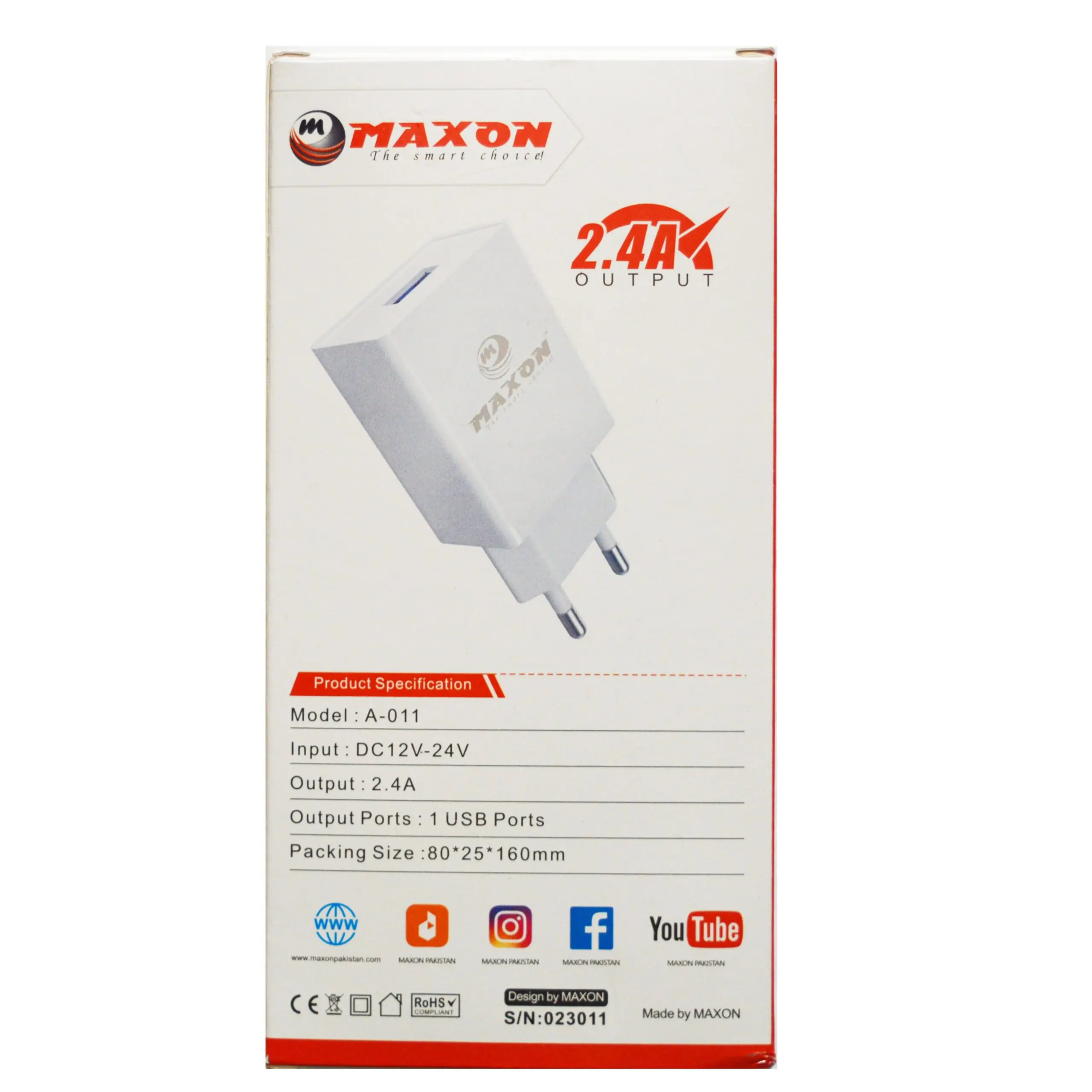 Experience the convenience and efficiency of the Maxon A-011 Smart and Small Charger, specifically designed for Android devices. This compact charger features a micro USB cable and a single USB port, providing a powerful output of 2.4A. Ideal for on-the-go charging, its sleek and small design ensures easy portability.