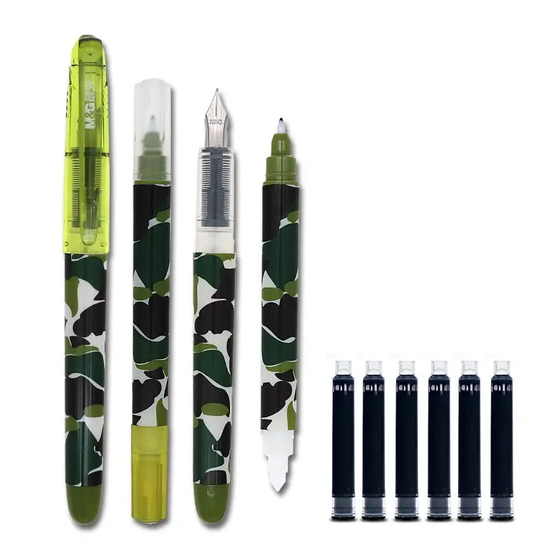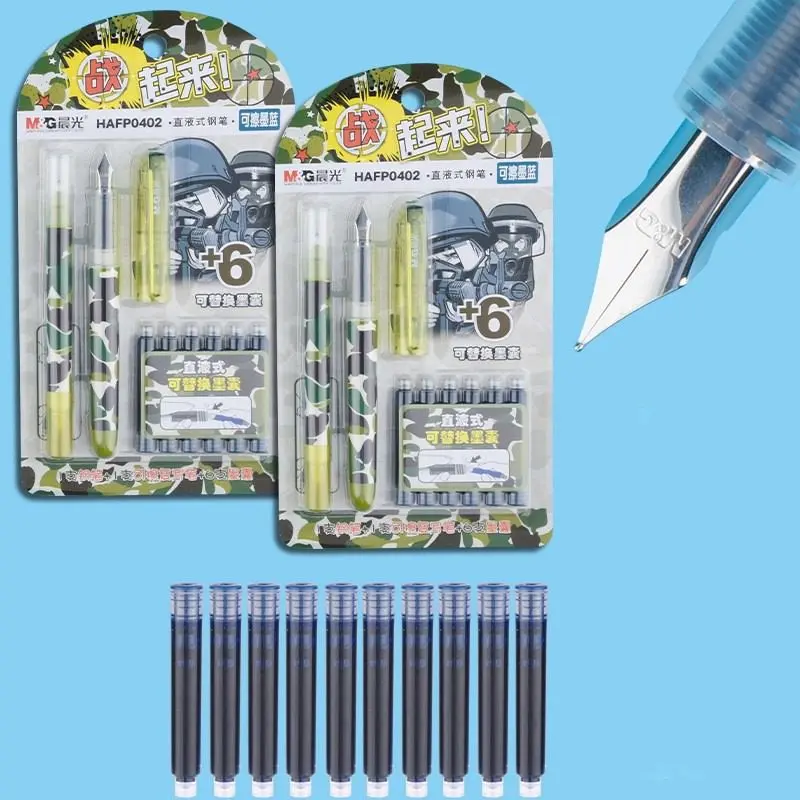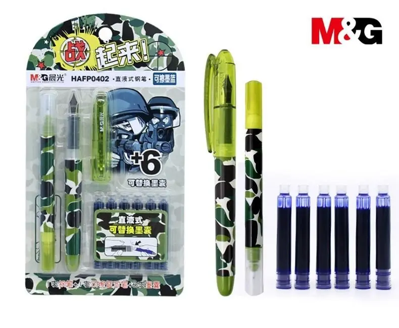 M&G Camouflage Cartridge Fountain Pen with Ink Remover and 6 Blue Refills