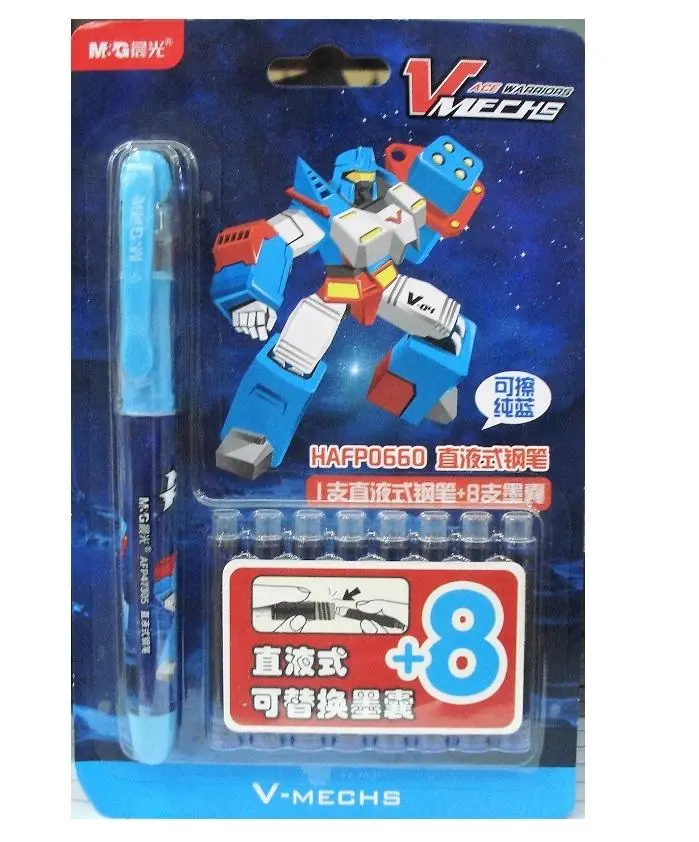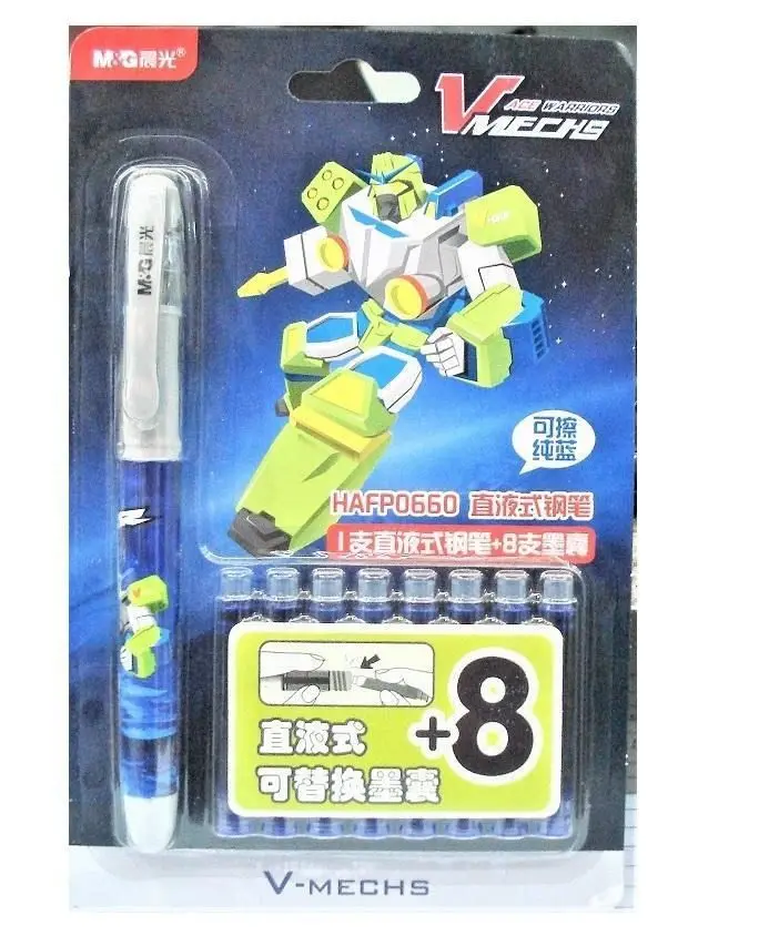 M&G Morning Light V Mechs Ace Warriors Cartridge Fountain Pen with 8 Blue Refills – Perfect Gift for Kids – HAFP0660