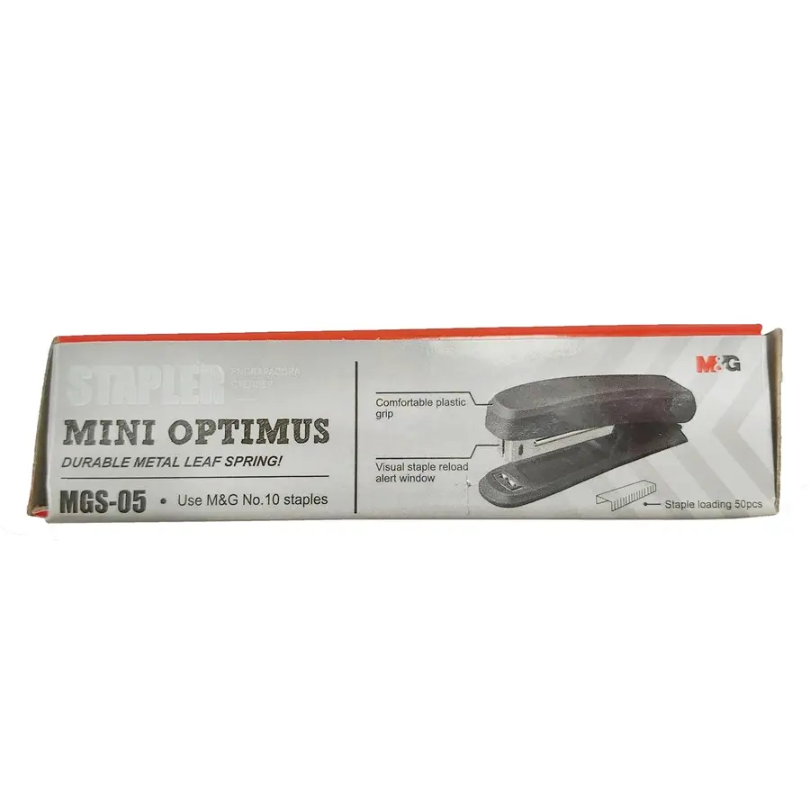 The M&G Mini Optimus Stapler MGS-05 is a compact yet durable stapler designed for precise and effortless stapling. With a durable metal leaf spring and comfortable plastic grip, it ensures smooth operation for small tasks. Compatible with No.10 staples, it features a visual staple reload alert window and a 50-staple loading capacity, making it perfect for office desks, schools, or home use where space and convenience matter.