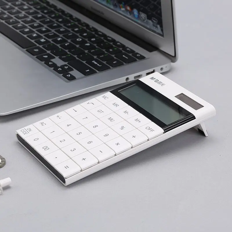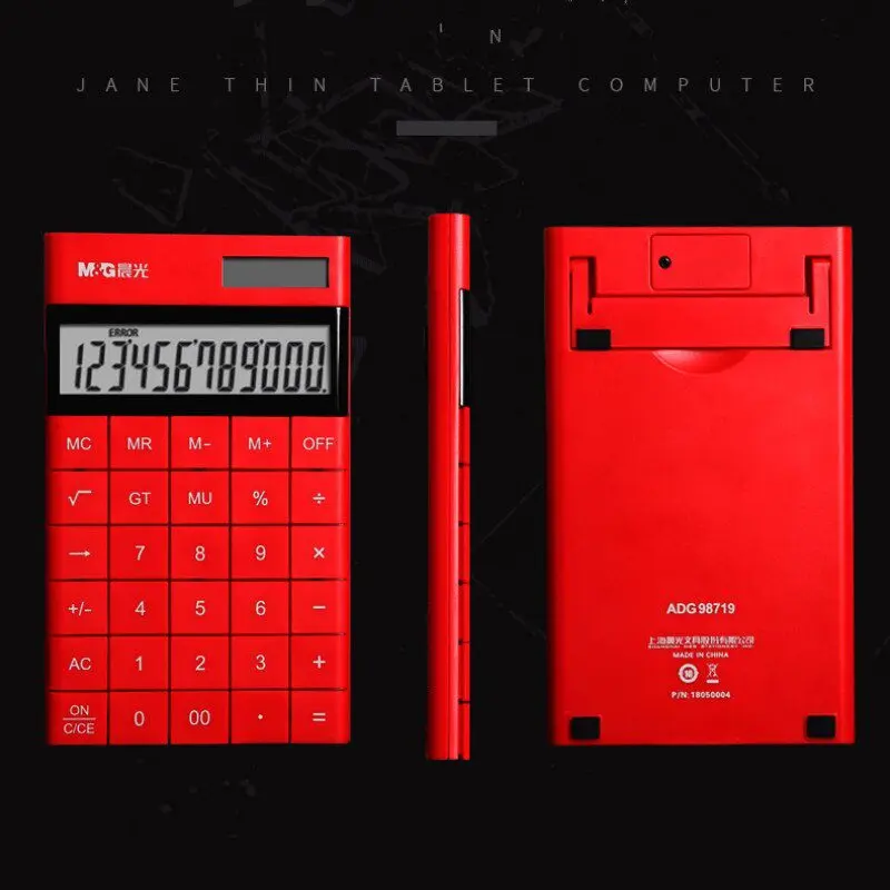 Bring style and functionality to your desk with the M&G MGC-11 ADG98780 Modern Tablet Desktop Calculator. Designed with a sleek 13mm ultra-slim body and flat keys, this calculator offers both professional looks and ease of use. The adjustable stand ensures comfortable viewing, while the extra-large display enhances readability.