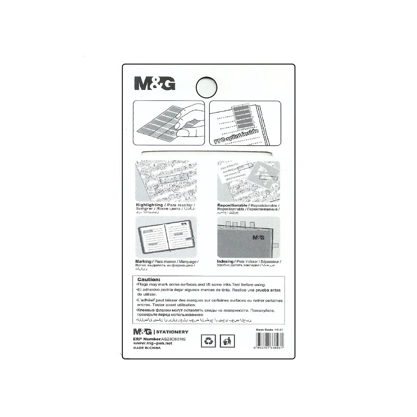 The M&G YS-97 (AS23O60102) is ideal for versatile, colorful, and reusable sticky flags. The six-color assortment allows easy categorization and visual organization, while the repositionable adhesive ensures flags can be moved without damage. The 43 × 10 mm size is perfect for compact marking and precise indexing in books, planners, or files.