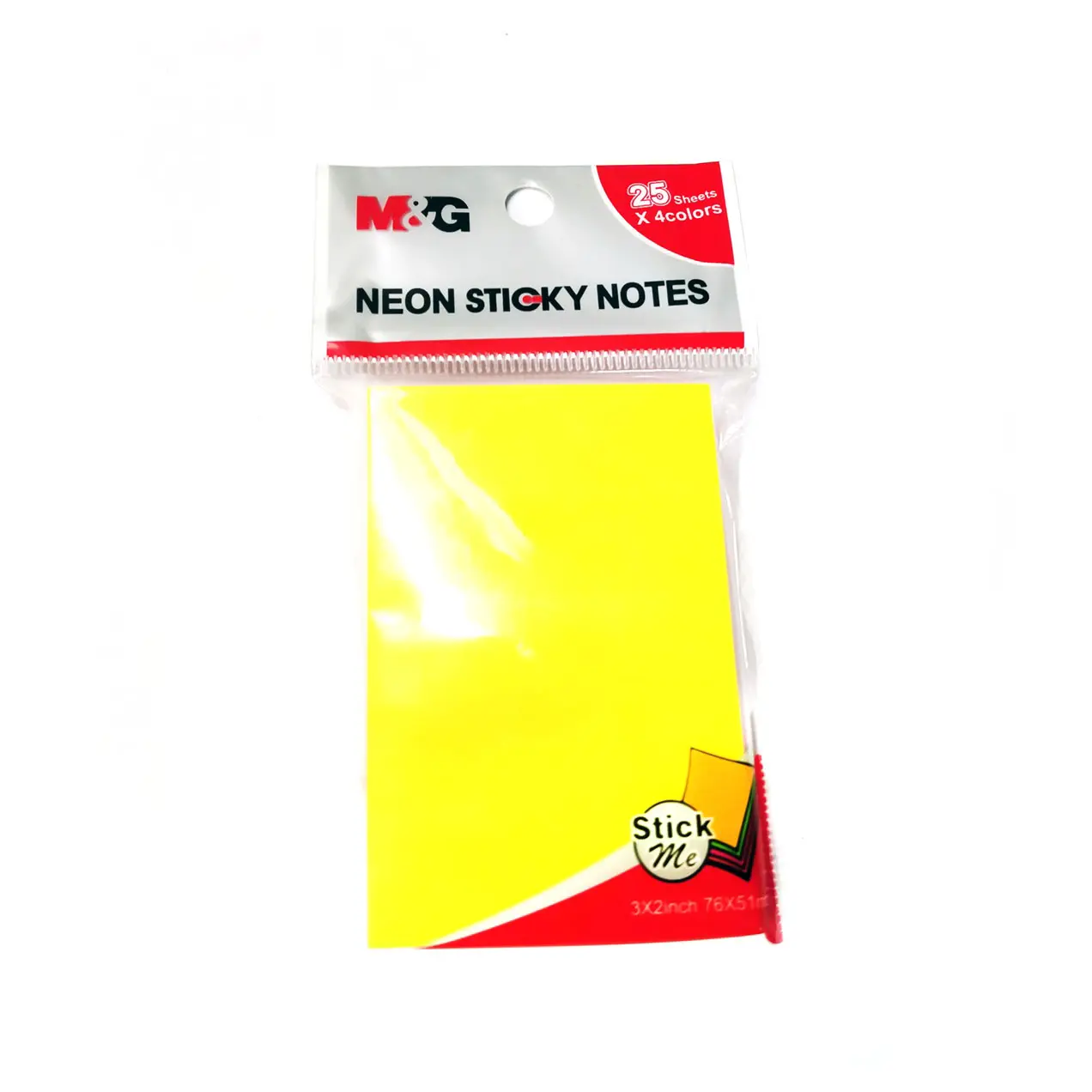 Brighten up your notes with the M&G Neon Sticky Notes YS-182, featuring a compact 3 × 2-inch (76 × 51 mm) plain neon surface for quick reminders and creative use. With 100 sheets divided into 25 sheets of each vibrant color — yellow, orange, pink, and green — this sticky pad is perfect for highlighting important tasks, color-coded planning, office memos, or school notes. The strong re-stickable adhesive ensures easy repositioning without residue, making it an ideal addition to your stationery collection.
