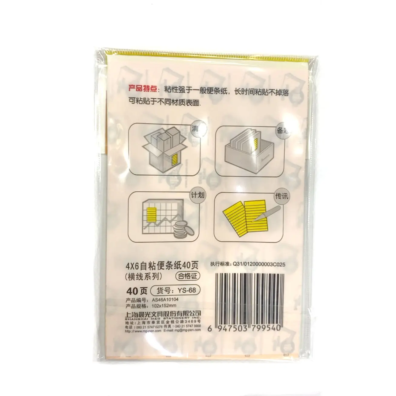 M&G Sticky Notes YS-68 – 4 × 6 Inches (102 × 152 mm) | 40 Sheets | 9mm Ruled | AS46A10104