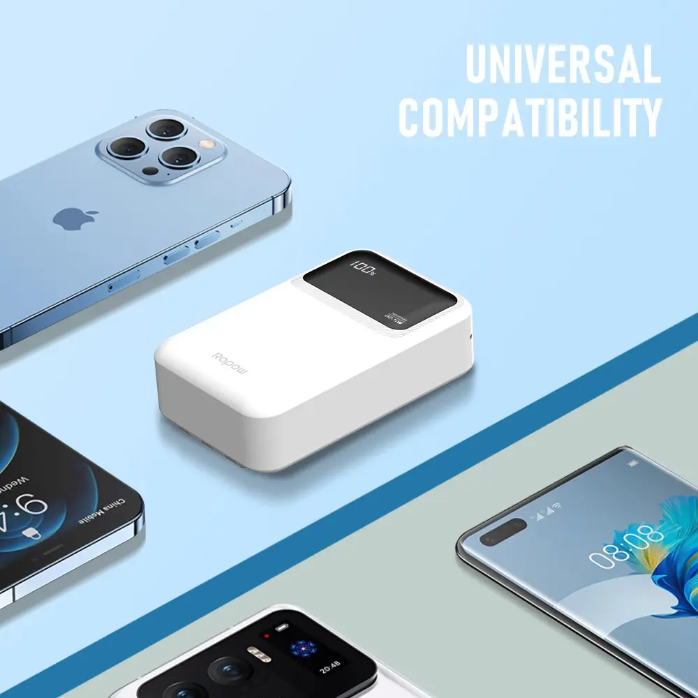 With high-speed charging, built-in cables, and multiple device support, this power bank is designed for users who need reliable power on the go. Its compact size and airplane-friendly design make it convenient for travel, while its robust 20,000 mAh battery ensures multiple full charges for all your devices.