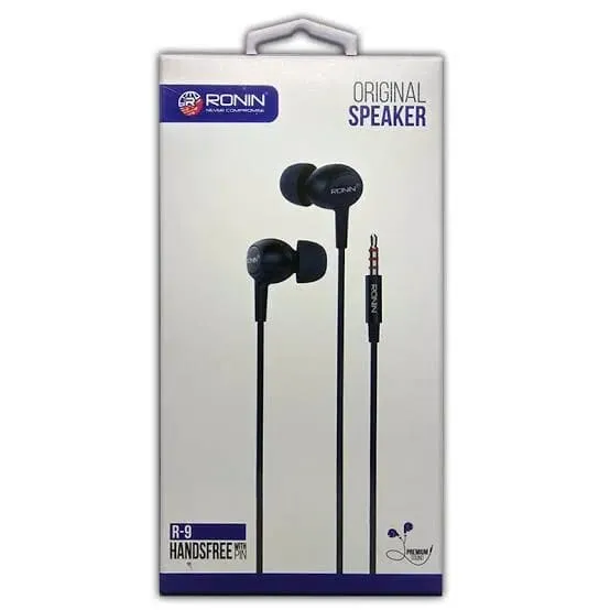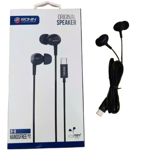 Experience superior audio with the RONIN R-9 Original Sound Handsfree, designed for music enthusiasts who value clarity and comfort. Featuring HD speakers, these in-ear earphones offer excellent sound accuracy and clarity with a powerful super bass effect for an immersive listening experience. The lightweight and durable design ensures long-wearing comfort with an ergonomic fit. The unique shell design and high elastic wire contribute to both durability and a distinctive appearance. With a 10mm driver unit, impedance of 16±15%, and a frequency response range of 20Hz–20kHz, the RONIN R-9 provides premium, high-definition sound. Available in Type-C and 3.5mm connectors, it offers versatility for modern and legacy devices.