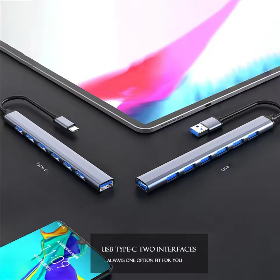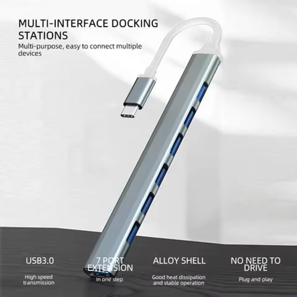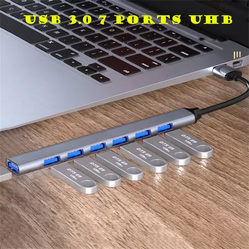 USB 3.0 Ultra-Slim Portable Hub – 7 Ports – Aluminum Alloy Body | High-Speed Expansion for Laptops & PCs